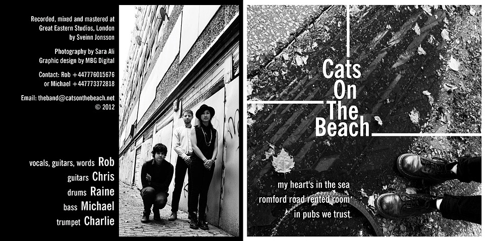 Branding, website and CD designs for indie band, Cats on the Beach.